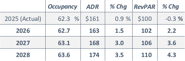 HVS offers the HVS MarketCast if you require an occupancy and ADR forecast for a specific market or submarket. Please reach out to me to learn more.
