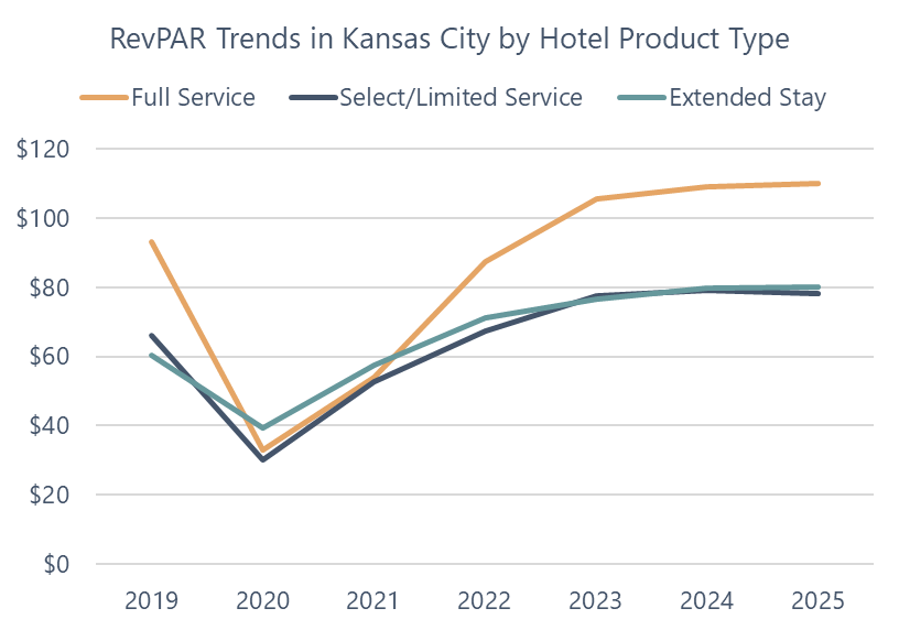 Historical Hotel Performance in Kansas City by Product Type